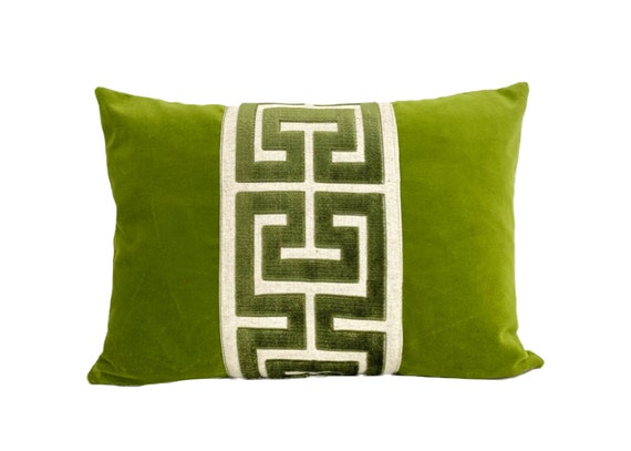 Lime Green Velvet Lumbar Pillow Cover With Large Greek Key Etsy Uk