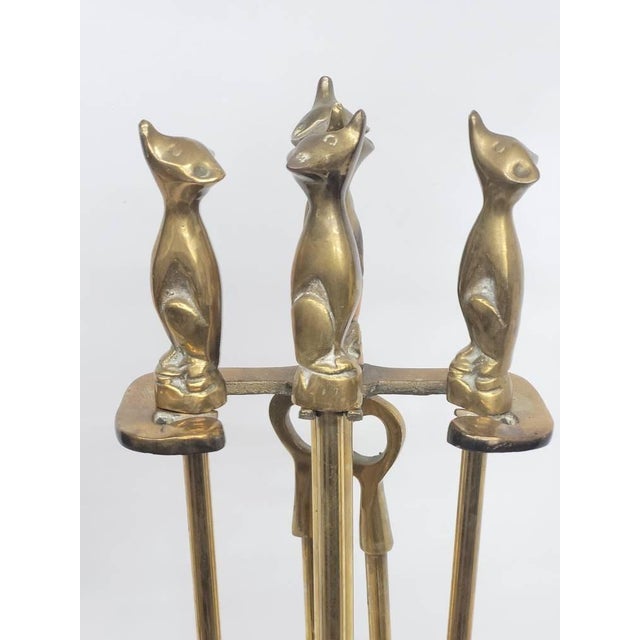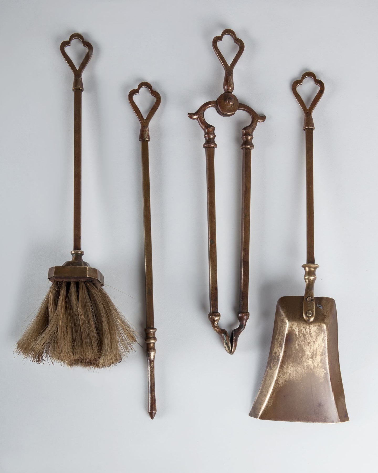 Brass Fireplace Tools With Art Deco Detailed Stands Vintage Collection